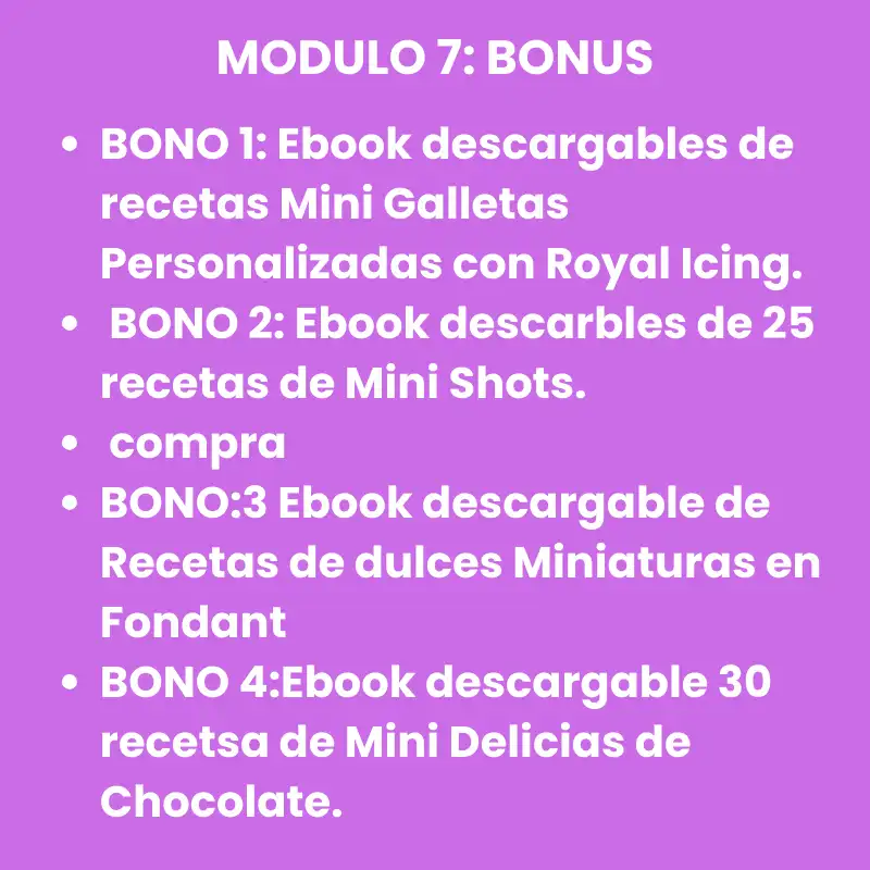 ✅BONO 4:Ebook descargable 30 recetsa de Mini Delicias de Chocolate.