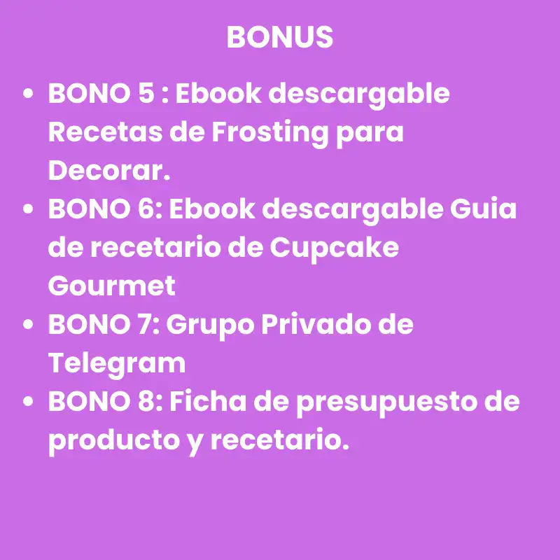 ✅BONO 6: Ebook descargable Guia de recetario de Cupcake Gourmet